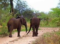 Günün ilk ışıklarıyla avcıların peşindeyiz. Ava çıkmış bir çift erkek çitanın gergin gövdeleriyle bizi umursamadan önümüzden geçişi tablo gibi. Yıkılmış ağaçların izinden gidince anneli yavrulu bir fil sürüsü. İri bir fil kulaklarını iki yana açarak bir süre süzüyor bizi.