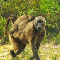 Öğle yemeğini biraz ilerde okyanus manzaralı bir yerde yiyeceğiz. Zaman zaman ortaya çıkan güneş açık havada, denize karşı yemek için iyi bir fırsat sunuyor acemilere. Acemiler Ümit burnuna yaklaştıkça babun popülasyonunun arttığını bilmeyen bizcileyin turistler elbet. Zaman zaman sürüler halinde yerleşim yerlerine de inen bu maymunsulardan biri öğle yemeğinde konuğumuz oldu. Nereden çıktığı anlaşılamadan masanın ortasına zıplayıp bardakları devirip ekmekleri ağzına tıkıştırıp haydi yan masaya. Elime geçirdiğim bir ferforje bahçe şamdanıyla dürtüp kovalamaya kalkmak pek de iyi bir fikir değilmiş, sivri dişleriyle koca ağzını açıp bağırmaya başlayınca anladım. Babunlarla sıcak temas istemiyorsanız ekmek yemeyeceksiniz o kadar.